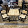 Chất liệu: Bàn mặt gỗ chân sắt, ghế lót nệm cao cấp.