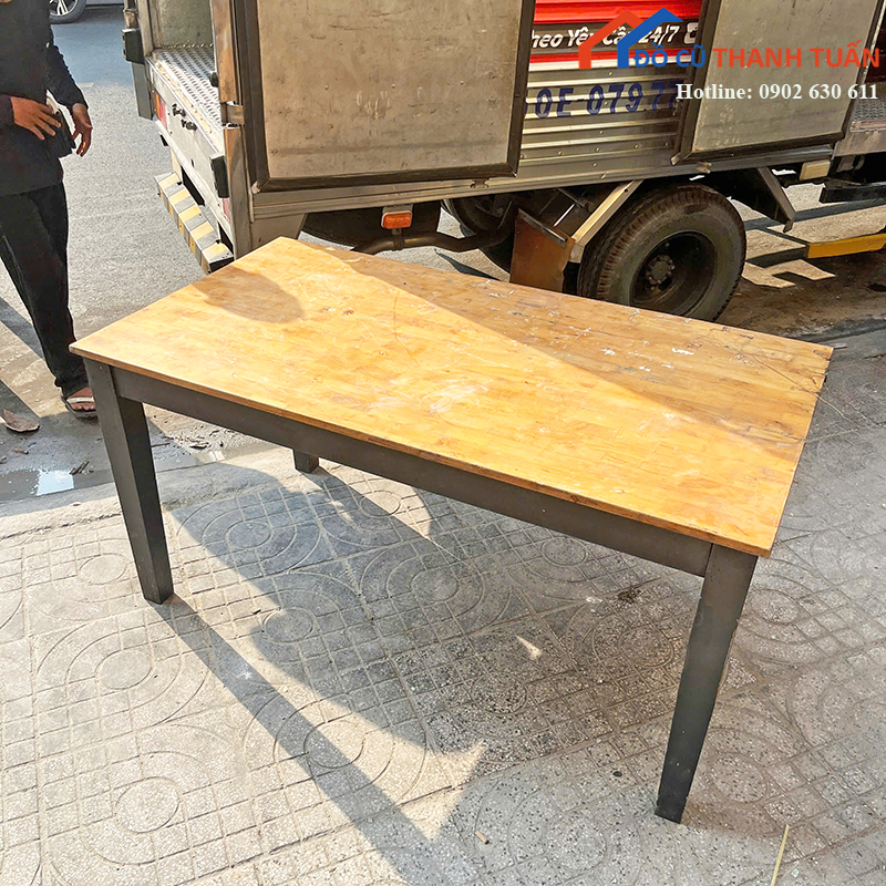 Bàn Ăn Cũ Mặt Gỗ Chân Sắt Hiện Đại Giá Tốt