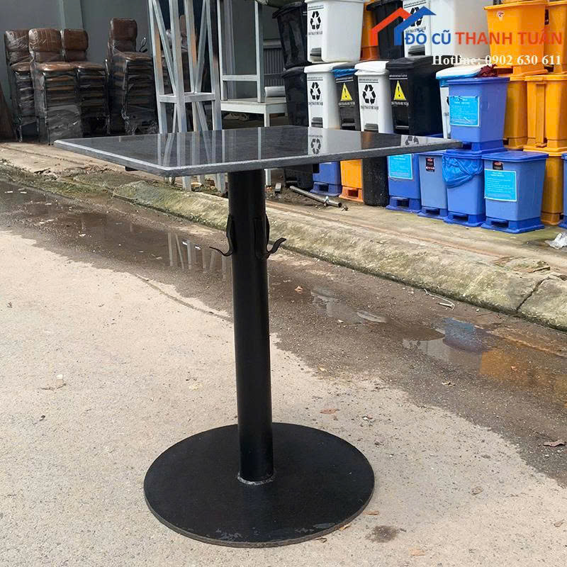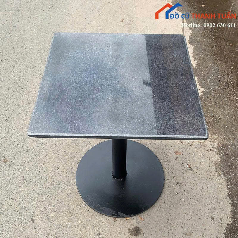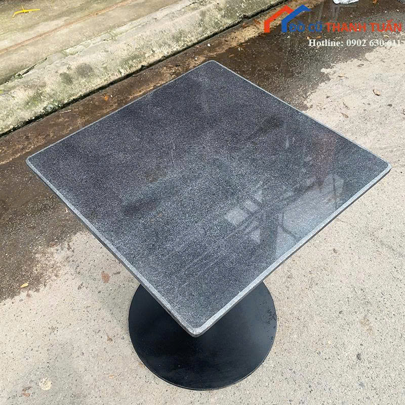 Mô tả: Bàn cafe mặt đá hoa cương thiết kế vuông, kiểu dáng đơn giản mà sang trọng. Mặt đá dày, bóng mịn, dễ lau chùi, chịu nhiệt và chống thấm tốt, thích hợp dùng cho quán cafe, quán ăn hoặc không gian ngoài trời. Chân bàn làm bằng sắt trụ tròn to bản, đế nặng giúp giữ bàn vững chắc, không rung lắc khi sử dụng.