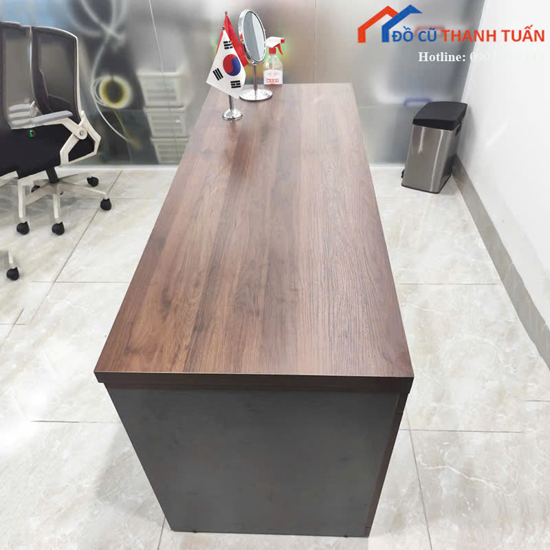 Khách có thể đến kho trực tiếp để kiểm tra độ mới và tình trạng thực tế của sản phẩm, hoặc nhắn Zalo để nhận thêm hình ảnh chi tiết hơn. Đồ Cũ Thanh Tuấn luôn có sẵn nhiều mẫu bàn giám đốc cũ và bàn làm việc khác đa dạng kiểu dáng.