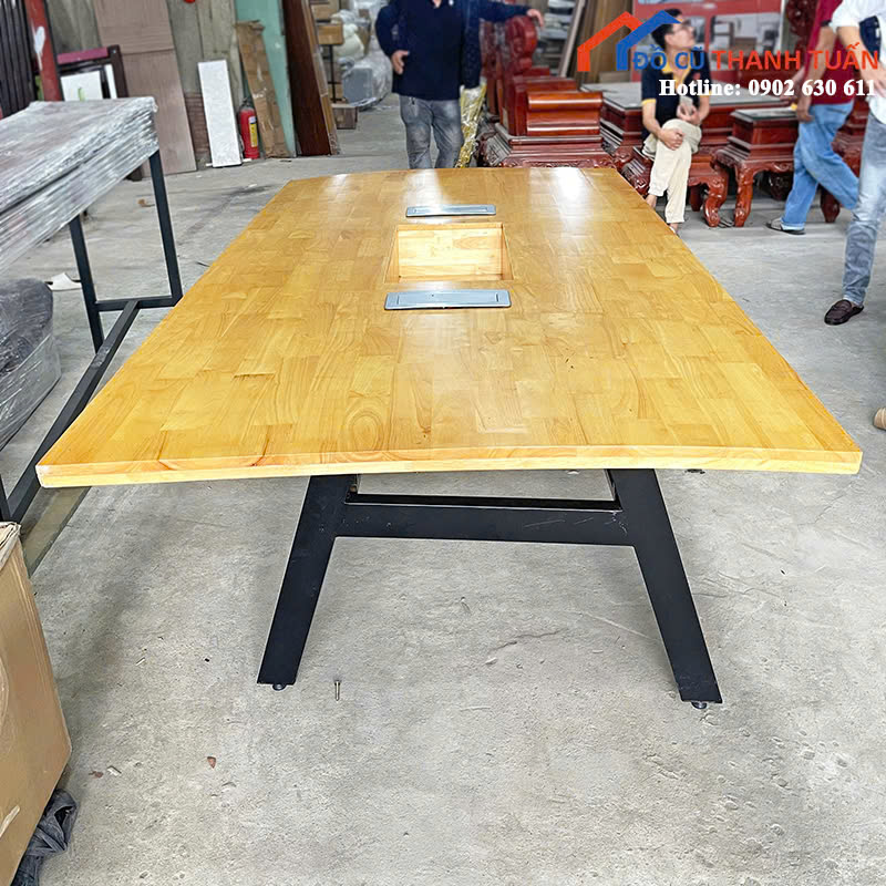 Mô tả: Bàn họp có độ bền cao, màu sắc tươi sáng, mang lại vẻ đẹp trang nhã cho không gian hội họp. Mặt bàn rộng rãi, thoải mái cho các cuộc họp, thảo luận nhóm hay làm việc tập thể. Thiết kế chân sắt chắc chắn, giúp bàn luôn ổn định và vững chãi. Sản phẩm phù hợp cho các văn phòng hiện đại hoặc không gian làm việc chuyên nghiệp. Bàn gỗ cao su có khả năng chống mài mòn, dễ dàng vệ sinh và duy trì độ mới lâu dài.