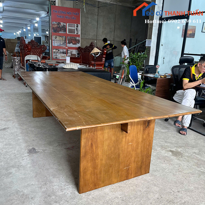 Bàn Họp Gỗ Cũ 2M8x1M2 Màu Nâu Kiểu Dáng Hiện Đại