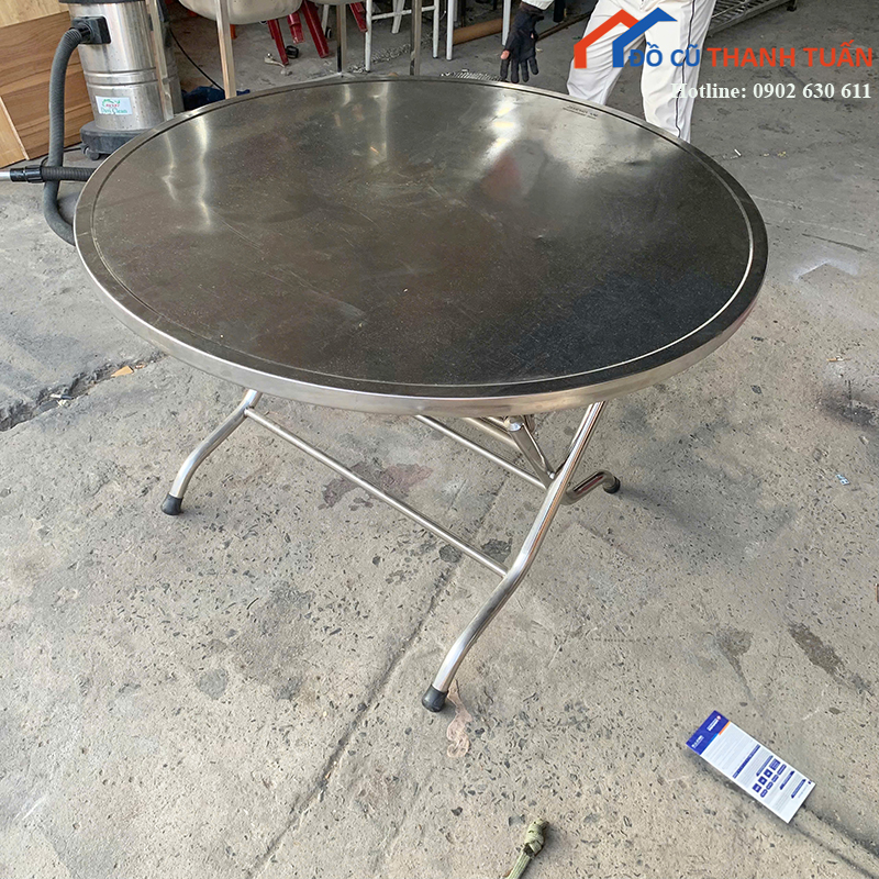 Bàn inox cũ tròn gấp gọn là sản phẩm lý tưởng cho những không gian linh hoạt, tiện lợi. Hãy ghé trực tiếp kho Đồ Cũ Thanh Tuấn để tham khảo hoặc liên hệ Zalo để được hỗ trợ tư vấn nhanh chóng.