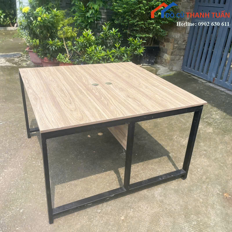 Mô tả: bàn làm việc có thiết kế dáng vuông, rất thích hợp làm bàn làm việc nhóm nhỏ, bàn họp 2-4 người hoặc bàn học tại nhà. Kích thước nhỏ gọn giúp tiết kiệm diện tích tối đa cho những không gian hẹp. Mặt bàn sử dụng gỗ công nghiệp chống thấm, chống trầy xước nhẹ, đảm bảo độ bền và giữ vẻ đẹp thẩm mỹ lâu dài. Bàn có sẵn các lỗ đi dây điện gọn gàng trên mặt, tăng tính tiện lợi khi dùng máy tính hoặc các thiết bị văn phòng khác.