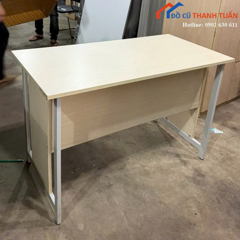 Bàn Làm Việc Cũ Vân Gỗ Sáng Khung Sắt Chắc Chắn