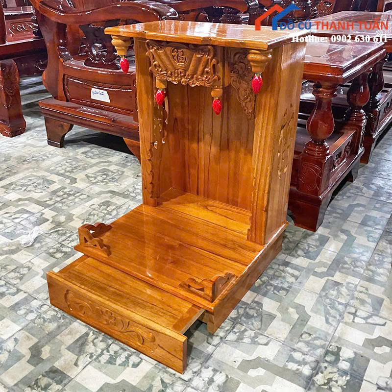 Thiết kế đơn giản nhưng đầy đủ tính năng cho không gian thờ cúng gia đình. Hãy đến trực tiếp cửa hàng Đồ Cũ Thanh Tuấn của chúng tôi hoặc liên hệ qua điện thoại/Zalo để tham khảo thêm các sản phẩm bàn thờ thanh lý khác và giữ hàng.
