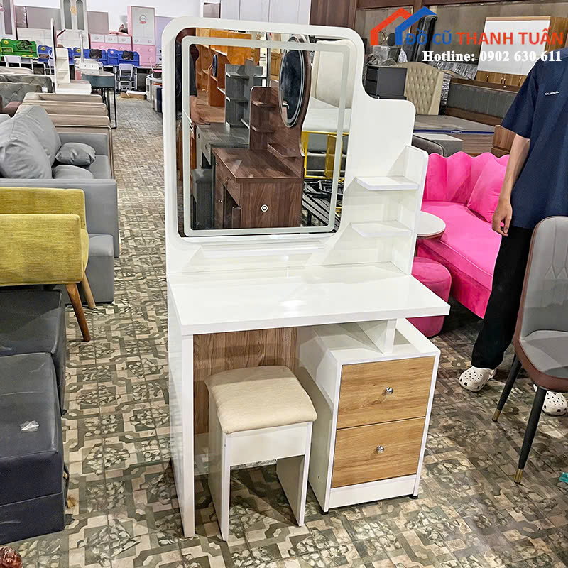 Bộ bàn kèm ghế có gương kết hợp đèn led hiện đại có sẵn tại Đồ Cũ Thanh Tuấn với tình trạng đẹp như mới, giá cả phải chăng. Ngoài mẫu này, cửa hàng còn rất nhiều loại bàn trang điểm thanh lý khác hách hàng có thể đến xem trực tiếp hoặc liên hệ Zalo để được tư vấn và giữ hàng.