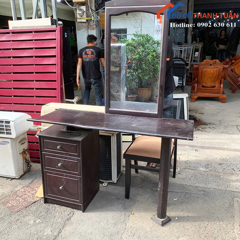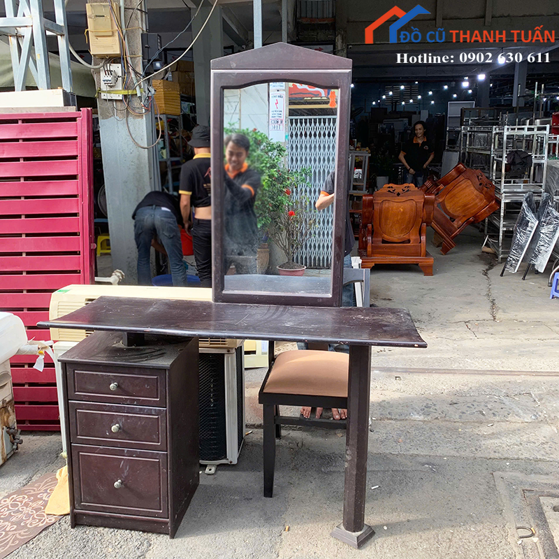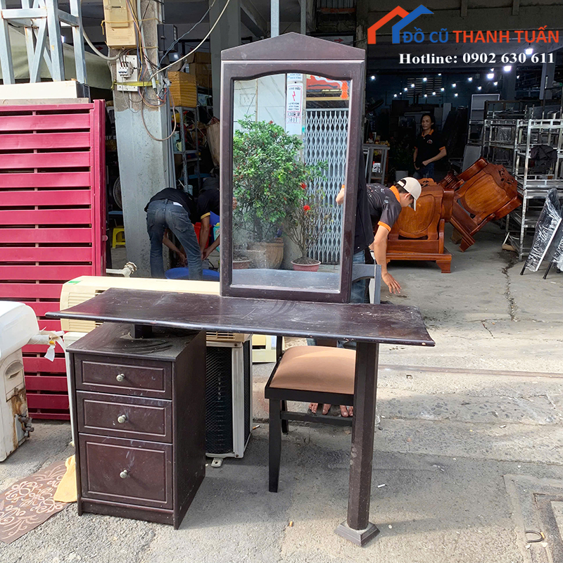 Bàn trang điểm cũ kiểu dáng cổ điển, phù hợp với nhiều không gian phòng ngủ. Khách hàng có thể ghé kho trực tiếp Đồ Cũ Thanh Tuấn để xem sản phẩm hoặc liên hệ qua Zalo/điện thoại để giữ hàng.