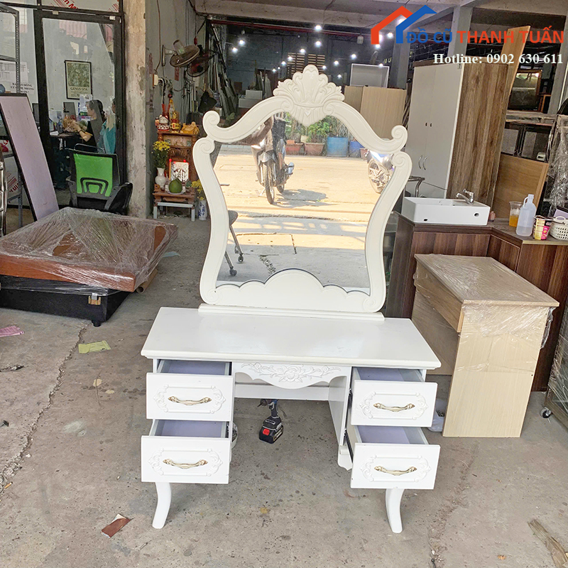Ngoài mẫu bàn trang điểm cũ còn có nhiều sản phẩm như sofa, kệ tivi, bàn ghế và đồ gia dụng khác. Khách hàng có thể ghé trực tiếp kho Đồ Cũ Thanh Tuấn để xem sản phẩm thực tế hoặc liên hệ gọi điện, nhắn Zalo để được tư vấn nhanh và giữ hàng.