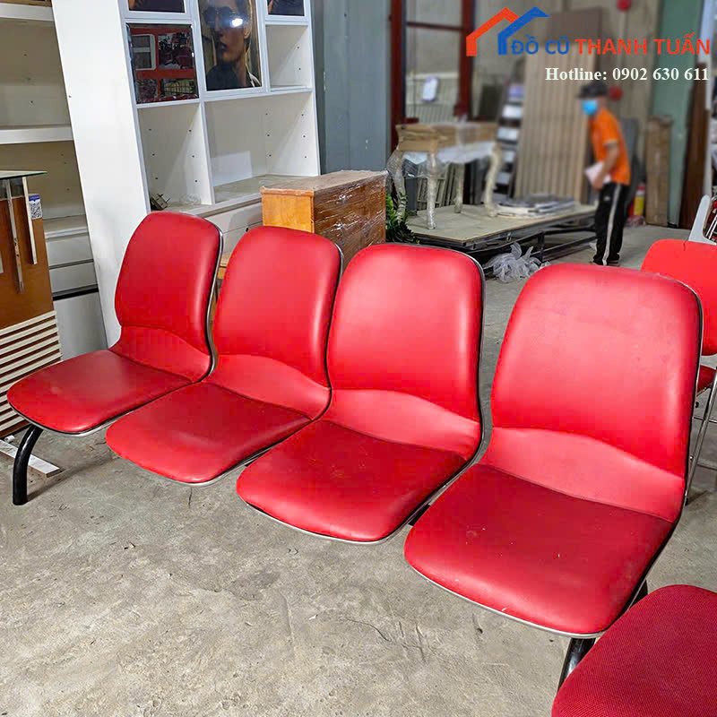 Băng 4 Ghế Chờ Cũ Màu Đỏ Khung Sắt Sang Trọng