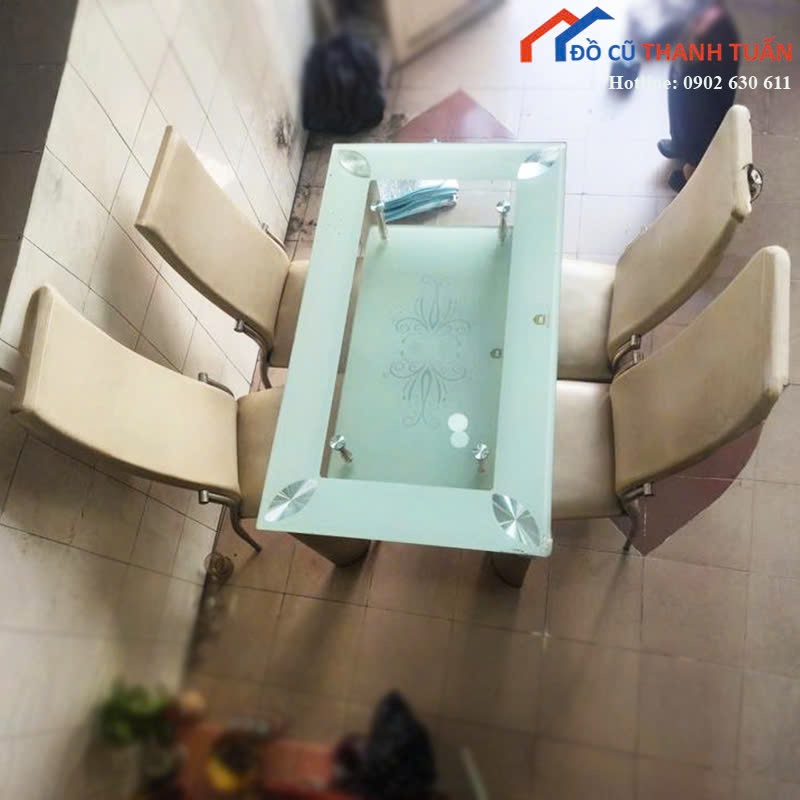 Bộ Bàn Ăn Mặt Kính Cũ 4 Ghế Thiết Kế Hiện Đại