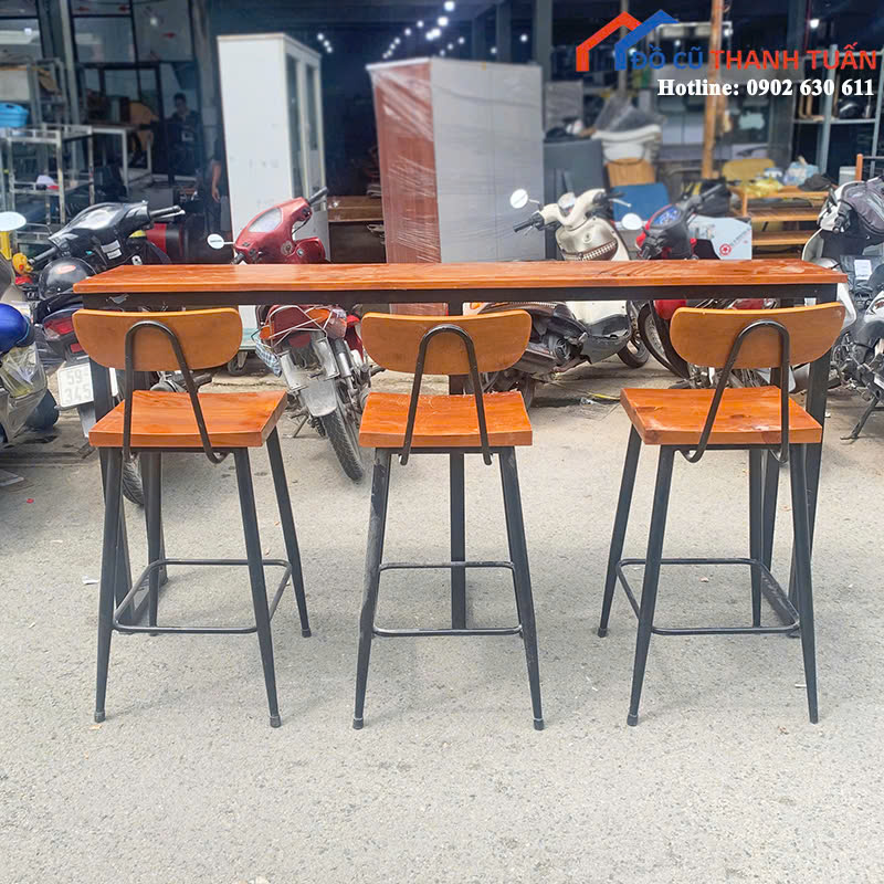 Bộ Bàn Ghế Bar Cũ Thiết Kế Chân Cao Hiện Đại