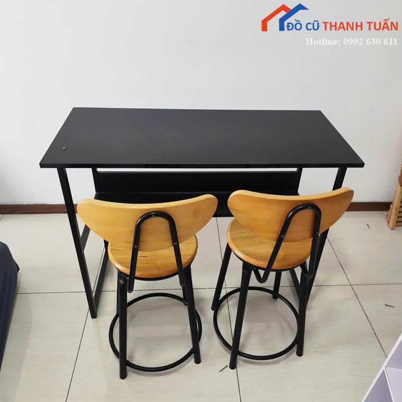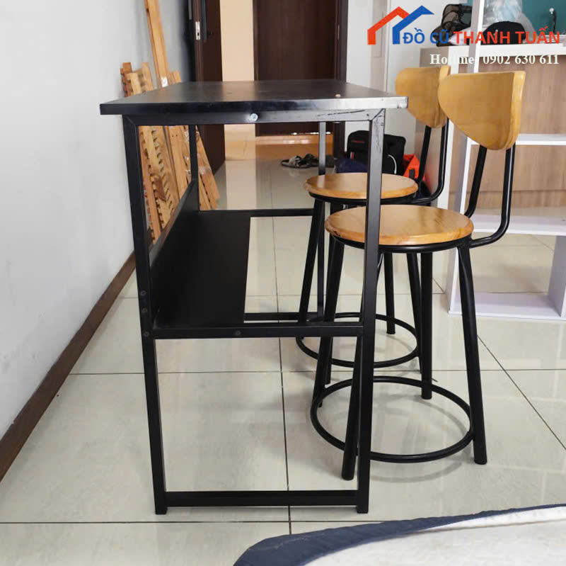 Mô tả: Bộ bàn cafe gồm một bàn khung sắt và ghế cao đi kèm, phù hợp sử dụng cho quán cafe, quán nước, quầy bar nhỏ hoặc không gian bếp gia đình. Thiết kế bàn cao giúp tạo khu vực ngồi gọn gàng, tiết kiệm diện tích và dễ bố trí sát tường hoặc cạnh quầy. Khung sắt chắc chắn, chịu lực tốt, hạn chế rung lắc khi sử dụng. Mặt bàn phẳng, dễ lau chùi trong quá trình sử dụng hằng ngày. Ghế cafe cao ngồi thoải mái, dễ di chuyển.
