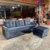 Bộ Sofa Góc L Bọc Nhung Màu Xám Cũ Đẹp