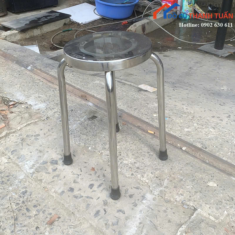 Mô tả: Ghế ăn inox thiết kế mặt tròn nhỏ gọn, phù hợp dùng trong quán ăn, quán nhậu hoặc gia đình. Mặt ghế bằng inox phẳng, dễ lau chùi khi bám nước hoặc dầu mỡ. Khung 4 chân uốn cong chắc chắn, có bọc chân nhựa giúp hạn chế trượt và giảm trầy sàn. Ghế chịu lực ổn định, ngồi vững, không chiếm nhiều diện tích nên dễ xếp gọn khi không sử dụng.