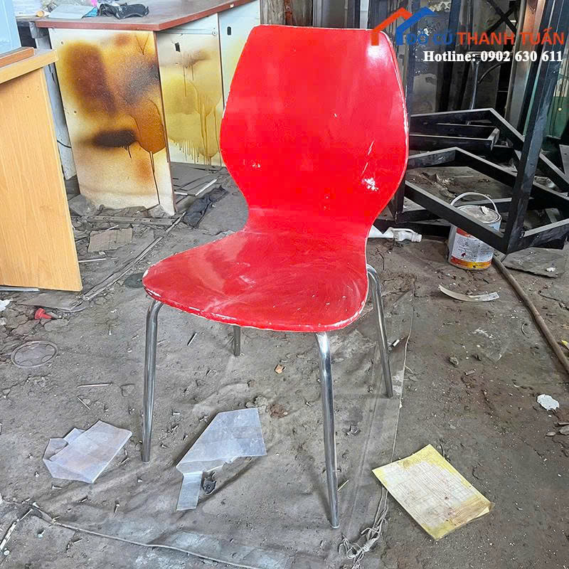 Mô tả: Ghế nổi bật với tông đỏ rực rỡ, thiết kế lưng tựa cong giúp ôm sát lưng người ngồi, tạo cảm giác thoải mái. Phần chân kim loại sáng bóng, chắc chắn, chịu lực tốt và không lo gỉ sét khi sử dụng lâu dài. Ghế có thể sử dụng đa năng cho nhiều không gian như quán ăn, nhà hàng, phòng ăn gia đình hay khu vực chờ. Dáng ghế gọn gàng, dễ xếp chồng khi cần lưu trữ.