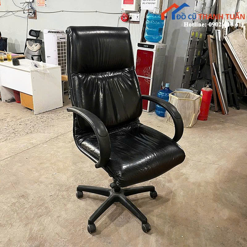 Chiếc ghế giám đốc cũ bọc da màu đen này không chỉ giúp làm việc thoải mái mà còn tạo điểm nhấn sang trọng cho phòng làm việc. Quý khách có thể tham khảo thêm nhiều mẫu ghế và nội thất văn phòng khác tại Đồ Cũ Thanh Tuấn hoặc liên hệ Zalo để giữ hàng trước khi hết nhé.