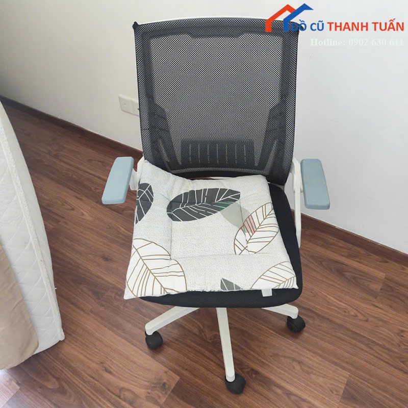 Mô tả: Ghế văn phòng cũ có thiết kế lưng lưới giúp thoáng khí, hạn chế nóng lưng khi ngồi làm việc trong thời gian dài. Phần nệm ngồi êm ái, tạo cảm giác dễ chịu khi sử dụng hằng ngày tại văn phòng hoặc làm việc tại nhà. Ghế có tay vịn hỗ trợ tư thế ngồi ổn định, giúp giảm mỏi vai và tay. Chân ghế xoay kèm bánh xe giúp di chuyển linh hoạt, thuận tiện khi thay đổi vị trí làm việc. Kiểu dáng gọn gàng, dễ kết hợp với nhiều loại bàn làm việc khác nhau.