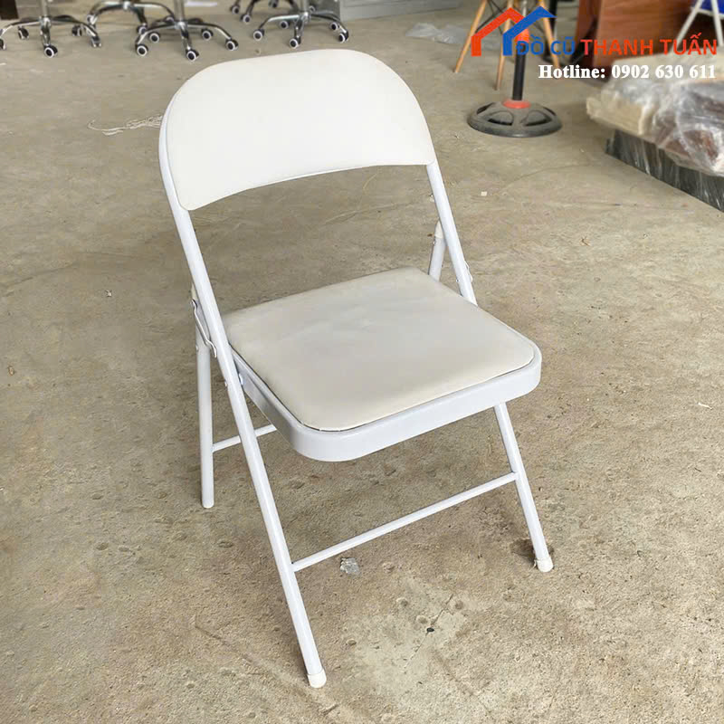 Mô tả: Ghế xếp màu trắng thiết kế gọn nhẹ, dễ dàng sử dụng trong nhiều không gian. Khung sắt sơn tĩnh điện chắc chắn, chống gỉ sét, đảm bảo độ bền khi sử dụng lâu dài. Phần ngồi và tựa lưng được bọc nệm êm ái, mang lại cảm giác thoải mái khi ngồi. Ghế có thể gấp gọn nhanh chóng, thuận tiện cho việc cất giữ và di chuyển, phù hợp với gia đình, văn phòng, lớp học, hội thảo hoặc các sự kiện cần nhiều chỗ ngồi.