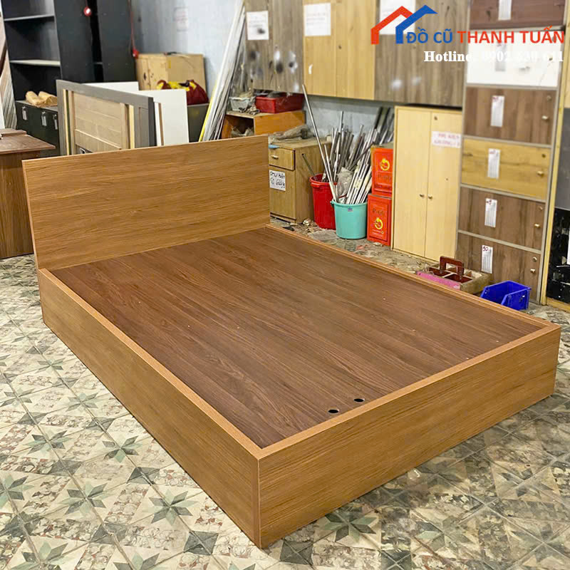 Giường Gỗ 2M Màu Nâu Thiết Kế Đơn Giản Mới 99%