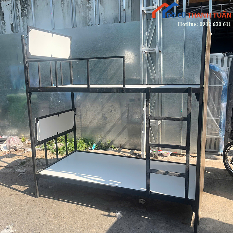 Giường Sắt Cũ 1M6x2M Màu Xanh Phối Đen Độc Đáo