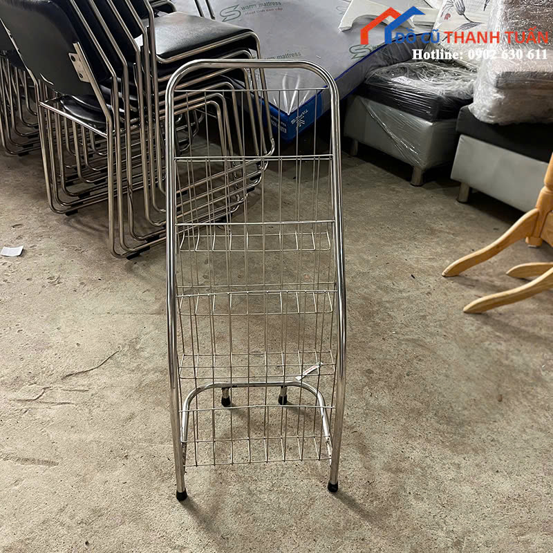 Kệ inox cũ này phù hợp cho gia đình, văn phòng, quán ăn, tiệm tạp hóa hoặc siêu thị nhỏ cần kệ gọn nhẹ, dễ di chuyển. Mời khách đến xem trực tiếp tại kho Đồ Cũ Thanh Tuấn hoặc liên hệ qua Zalo, gọi điện để được tư vấn nhanh nhất.
