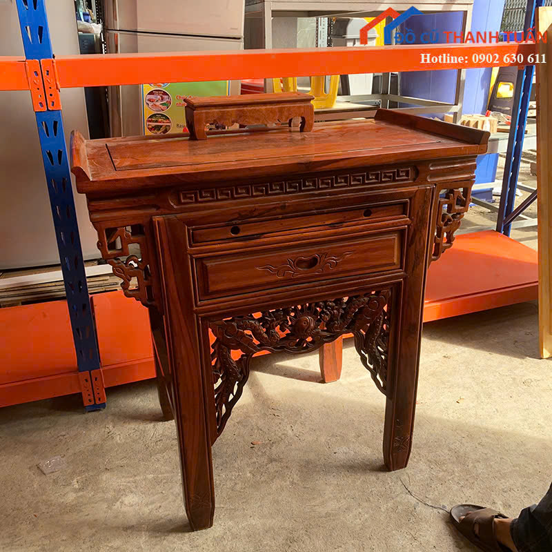 Khách hàng có thể đến trực tiếp cửa hàng để xem thêm các sản phẩm khác hoặc liên hệ qua Zalo để đặt hàng và giữ sản phẩm. Đừng bỏ lỡ cơ hội sở hữu chiếc kệ thờ gỗ cũ đẹp mắt này, tham khảo thêm các sản phẩm nội thất khác trong kho của Đồ Cũ Thanh Tuấn.