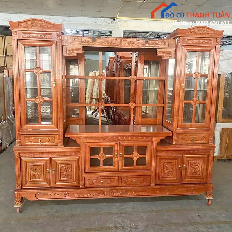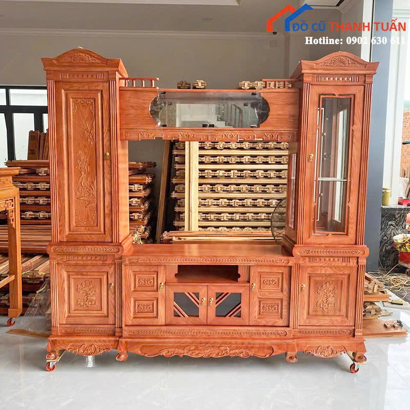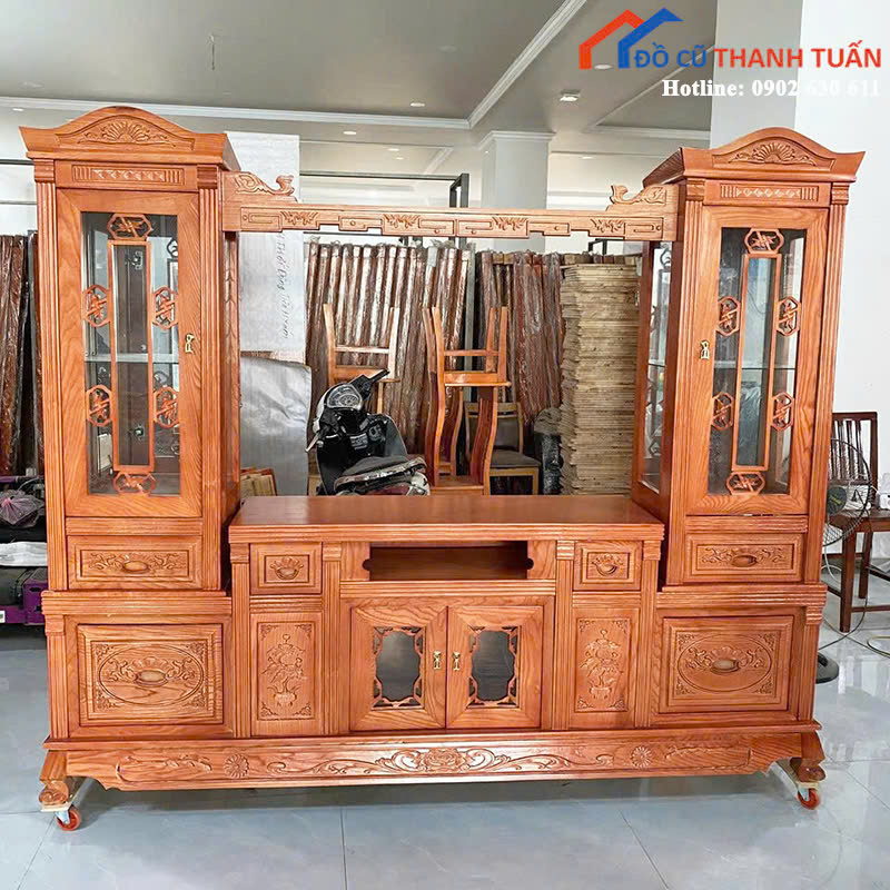 Thanh Lý Kệ Tivi Gỗ Chạm Khắc Cổ Điển Mới 99%