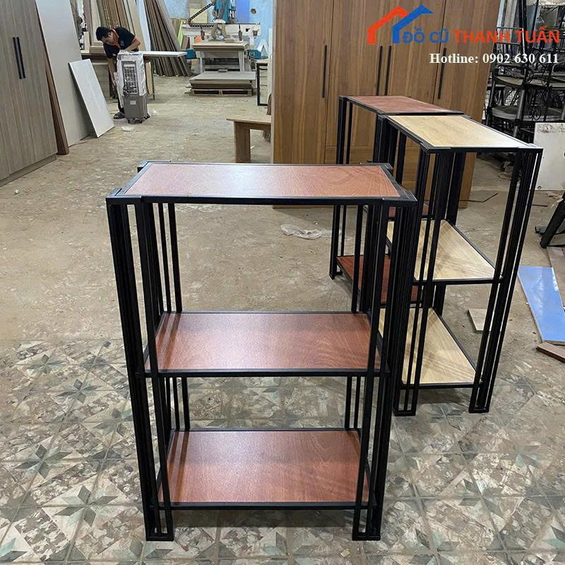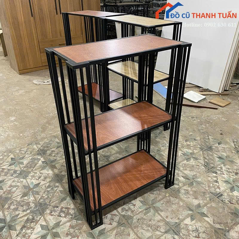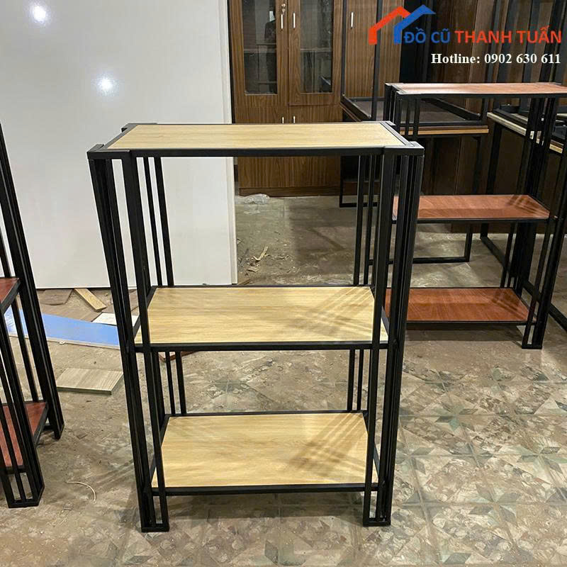 Mô tả: Kệ trưng bày được thiết kế dạng 3 tầng, khung sắt sơn đen chắc chắn kết hợp các mặt kệ bằng gỗ tạo cảm giác gọn gàng, hiện đại. Kết cấu kệ cứng cáp, đứng vững, chịu lực tốt, phù hợp trưng bày hàng hóa, để vật dụng hoặc hồ sơ. Khoảng cách giữa các tầng vừa phải, dễ sắp xếp đồ dùng, máy móc hoặc sản phẩm bán hàng. Kiểu dáng đơn giản, dễ phối với nhiều không gian khác nhau như cửa hàng, văn phòng, nhà kho hoặc nhà ở.
