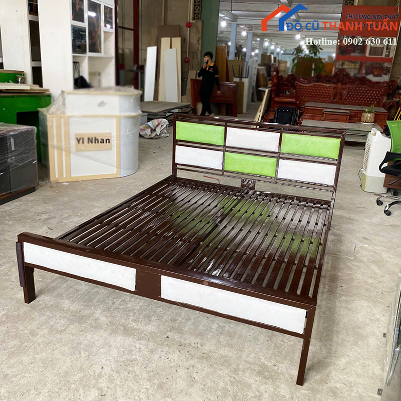 Giường Sắt Cũ 1M6x2M Màu Xanh Phối Đen Độc Đáo