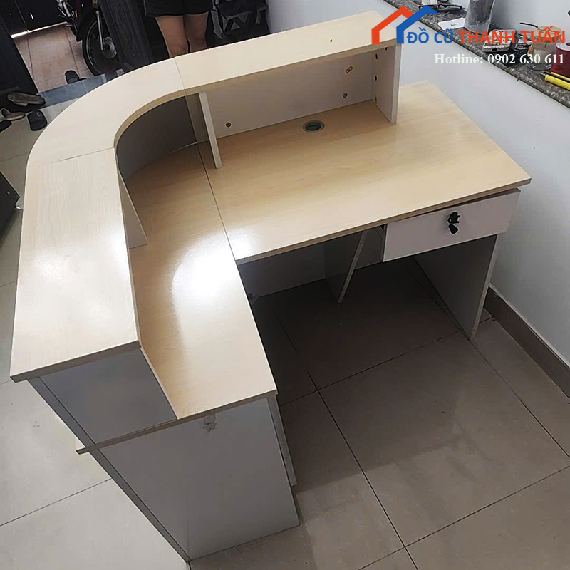 Quầy Lễ Tân Cũ Vân Gỗ Sáng Thiết Kế Góc L Bo Cong
