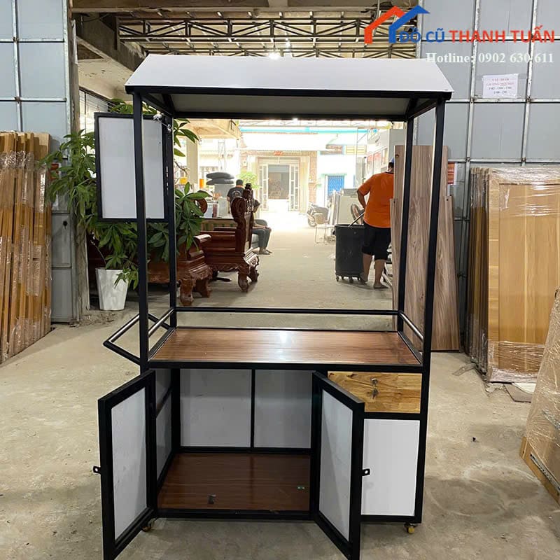 Mô tả: Quầy bán hàng với thiết kế đơn giản nhưng vô cùng tiện dụng, giúp tối ưu không gian và tiết kiệm chi phí cho các cửa hàng, quán café, hay gian hàng. Quầy có khung sắt chắc chắn và mặt gỗ, đảm bảo độ bền lâu dài. Bên cạnh đó, các ngăn chứa đồ có cửa giúp bạn dễ dàng lưu trữ sản phẩm, vật dụng mà không lo bị mất. Quầy có bánh xe di động, thuận tiện trong việc di chuyển và lắp đặt.