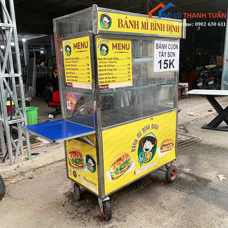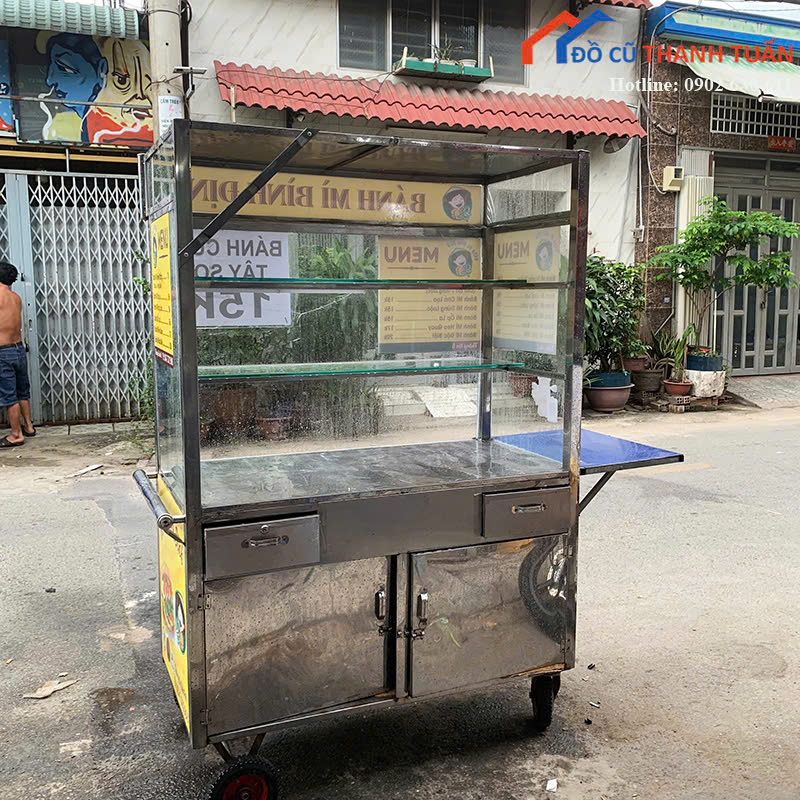 Quầy Bán Hàng Cũ Kính Cường Lực Có Bánh Xe Tiện Dụng