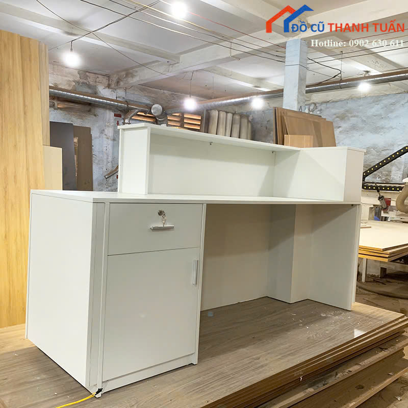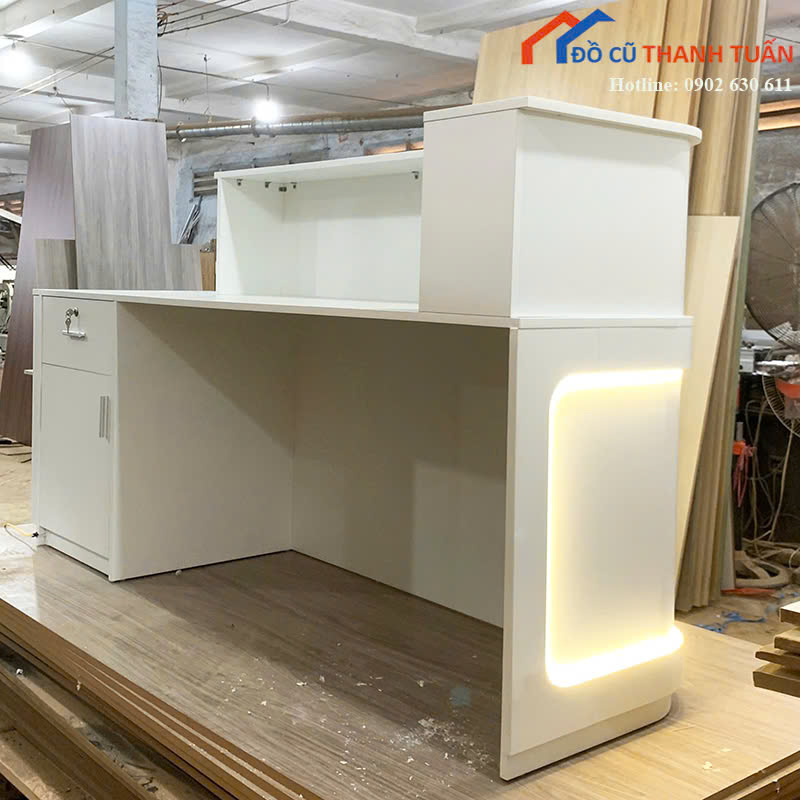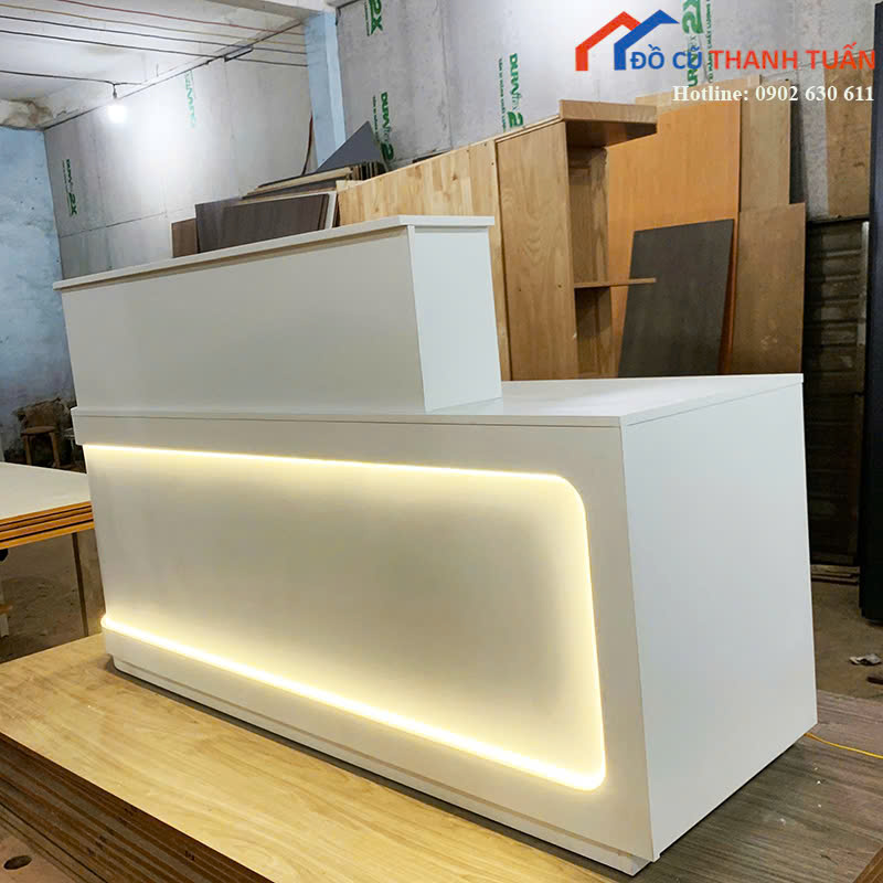 Đồ Cũ Thanh Tuấn hiện có sẵn nhiều mẫu quầy lễ tân thanh lý với đa dạng kiểu dáng từ đơn giản đến bo cong có đèn led, giúp anh chị tiết kiệm chi phí nhưng vẫn đảm bảo thẩm mỹ. Anh chị có thể ghé kho xem trực tiếp hoặc liên hệ gọi điện, nhắn Zalo để được tư vấn chi tiết.