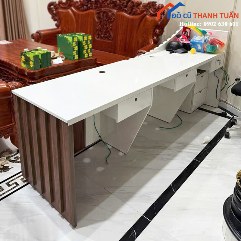 Đồ Cũ Thanh Tuấn chuyên cung cấp nhiều mẫu quầy cũ, bàn làm việc từ bàn đơn, bàn cụm nhân viên đến bàn giám đốc, đáp ứng đa dạng nhu cầu sử dụng. Quý khách có thể ghé kho để tham khảo trực tiếp hoặc liên hệ hotline, nhắn Zalo để được tư vấn, đặt giữ hàng và giao tận nơi nhanh chóng.