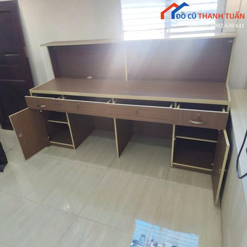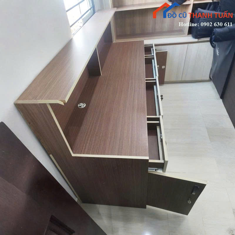 Ngoài quầy lễ tân cũ còn có sẵn nhiều nội thất khác như bàn làm việc, tủ hồ sơ, ghế văn phòng, sofa, kệ trưng bày. Anh chị có thể ghé kho Đồ Cũ Thanh Tuấn xem hàng trực tiếp hoặc liên hệ gọi điện, nhắn Zalo để được tư vấn nhanh chóng.