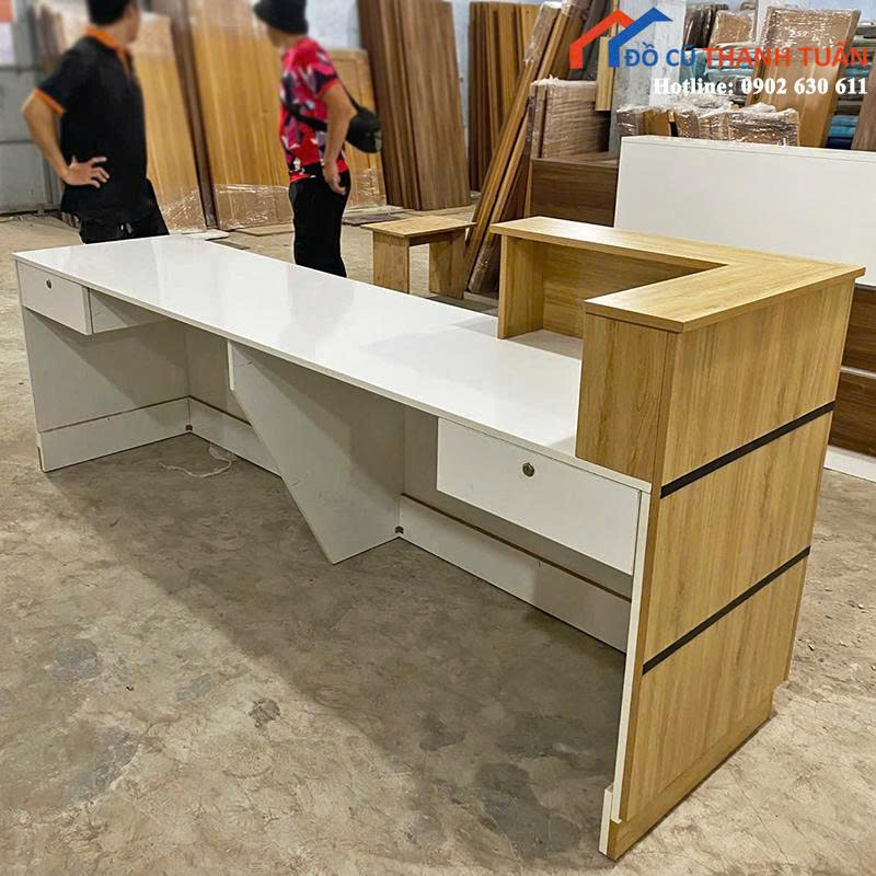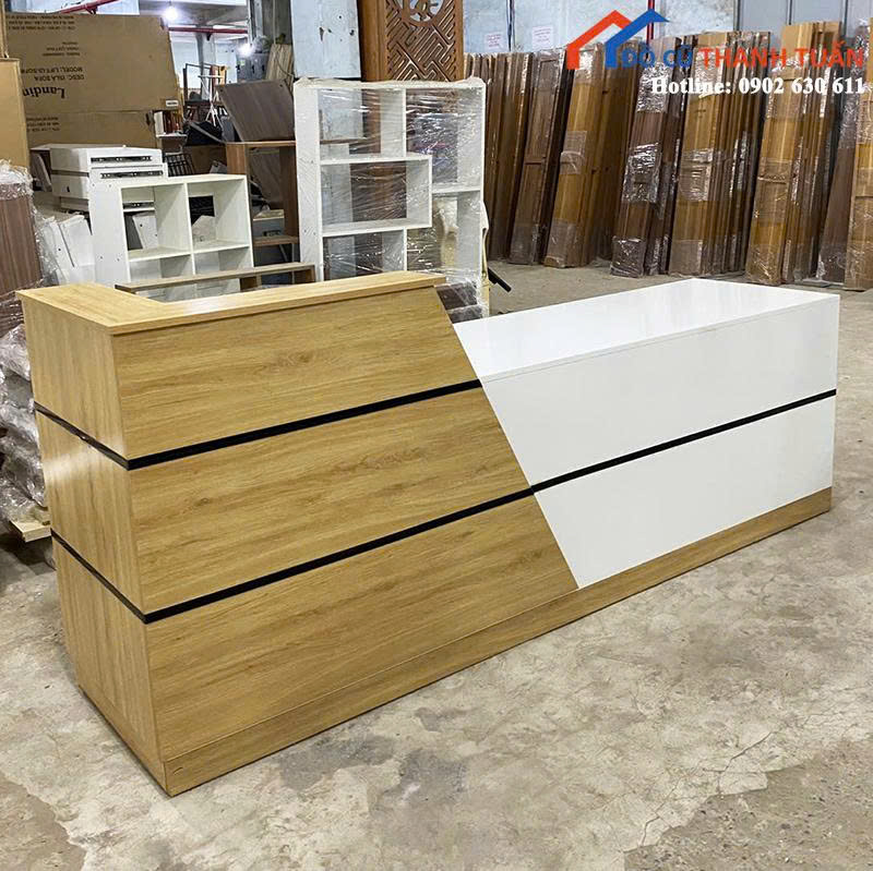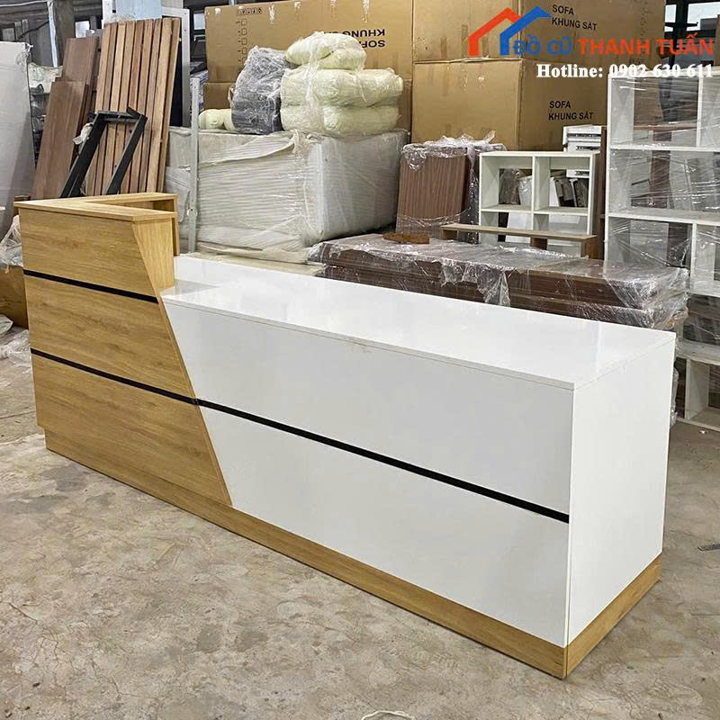 Quầy Lễ Tân Gỗ 2M4x1M Phối Trắng Hiện Đại Mới 99%