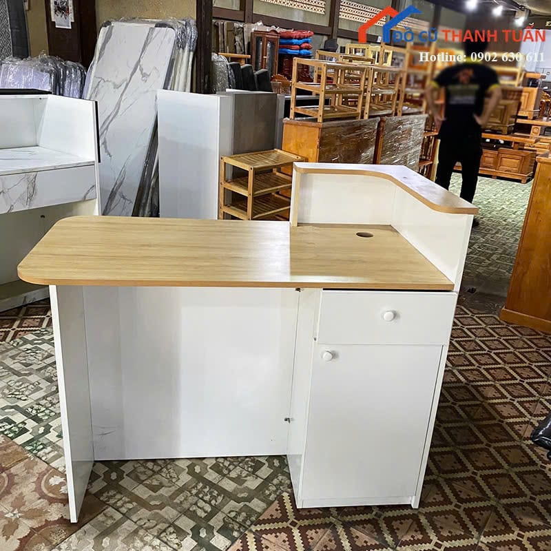 Ngoài mẫu này, Đồ Cũ Thanh Tuấn còn nhiều loại quầy lễ tân thanh lý, quầy bán hàng, quầy thu ngân và quầy trưng bày với kích thước khác nhau để khách tham khảo thêm. Khách có thể ghé xem trực tiếp tại kho để xem hàng thực tế, hoặc gọi điện hay nhắn Zalo để được tư vấn và giữ hàng.