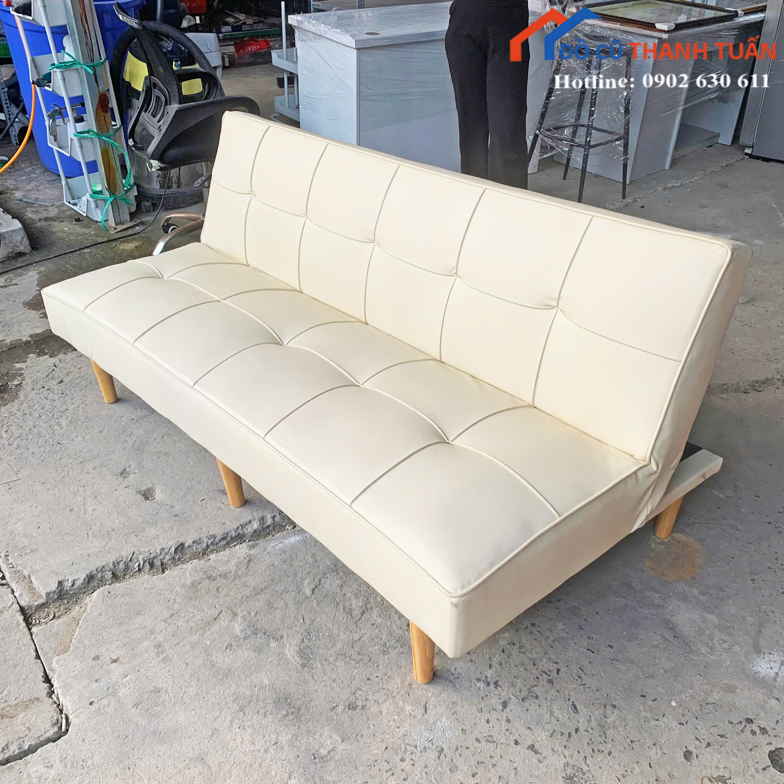 Thanh Lý Sofa Bed Cũ Bọc Da Màu Kem Sang Trọng