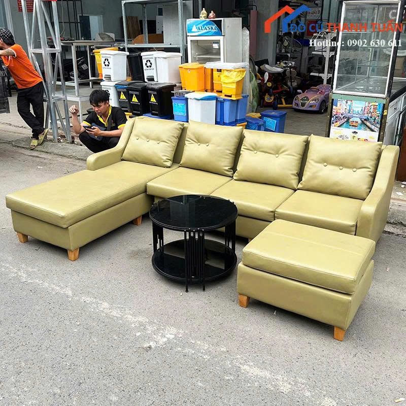 Sofa Cũ 1M76x2M5 Góc L Bọc Da Màu Xanh Nhạt Hiện Đại