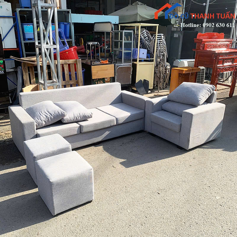 Thanh Lý Sofa Cũ Màu Xám Kèm Đôn Nhỏ Gọn