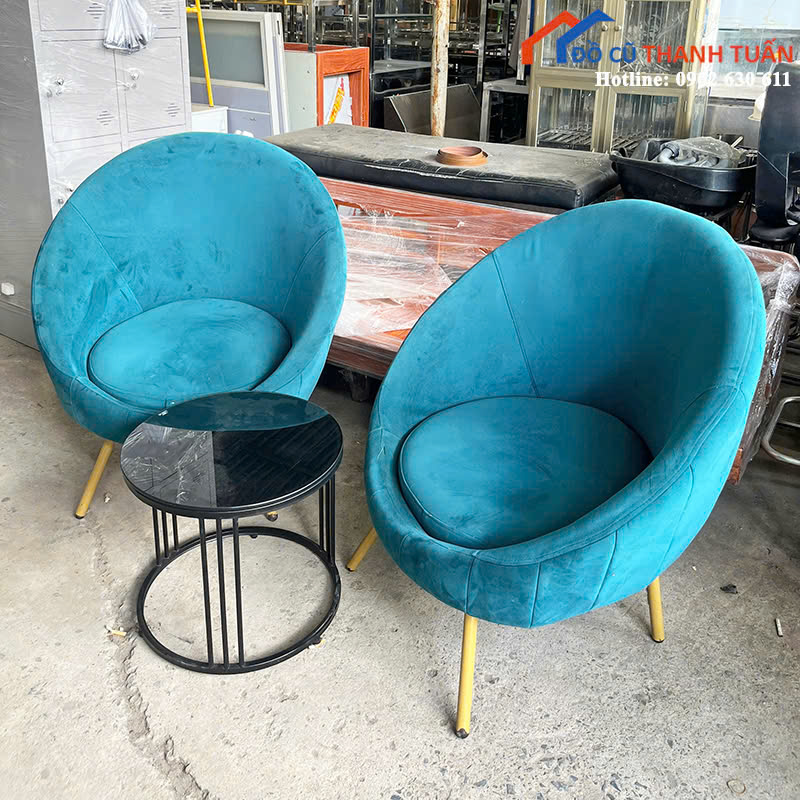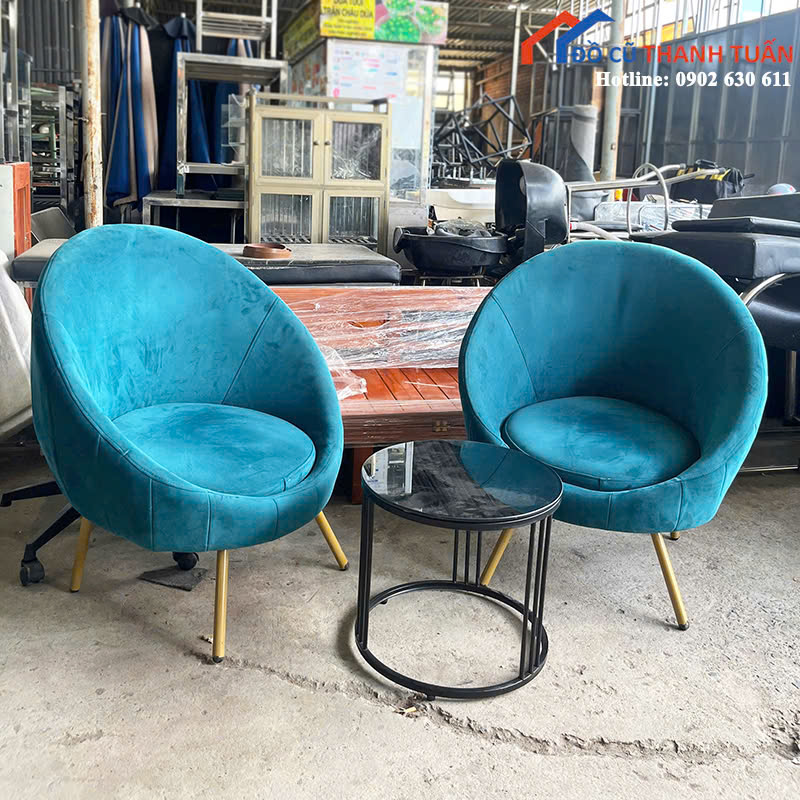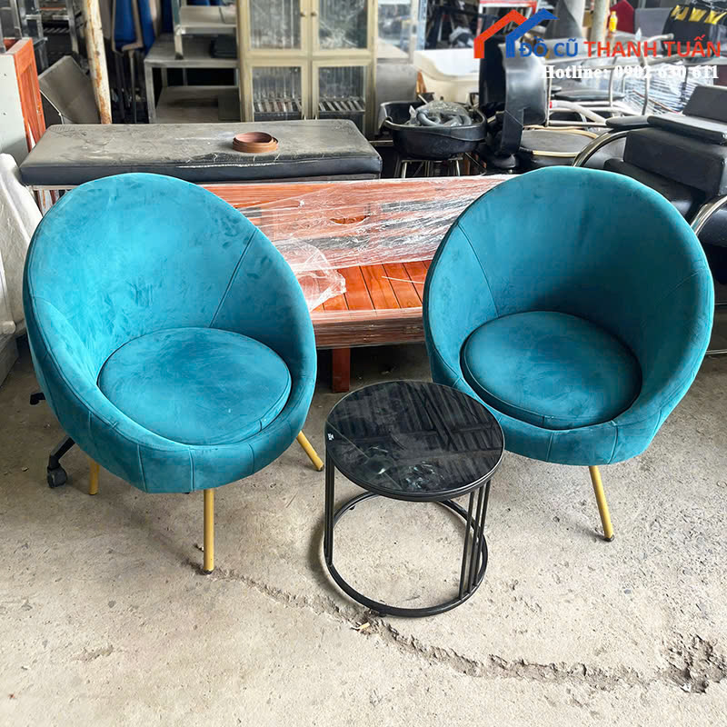 Sofa Cũ Bọc Nhung Màu Xanh Sang Trọng