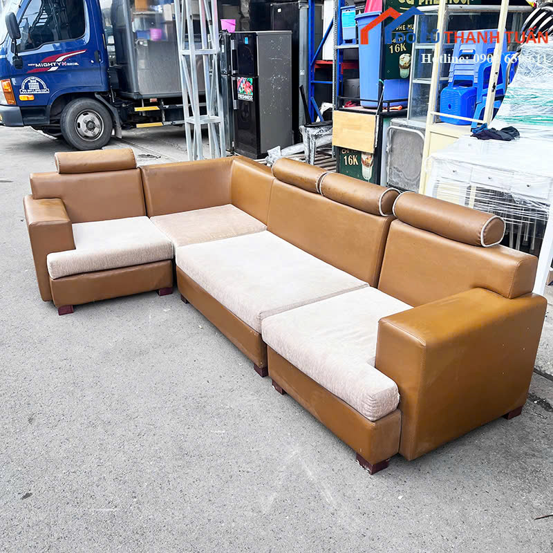 Sofa Cũ Góc L Bọc Da Màu Nâu Thiết Kế Sang Trọng
