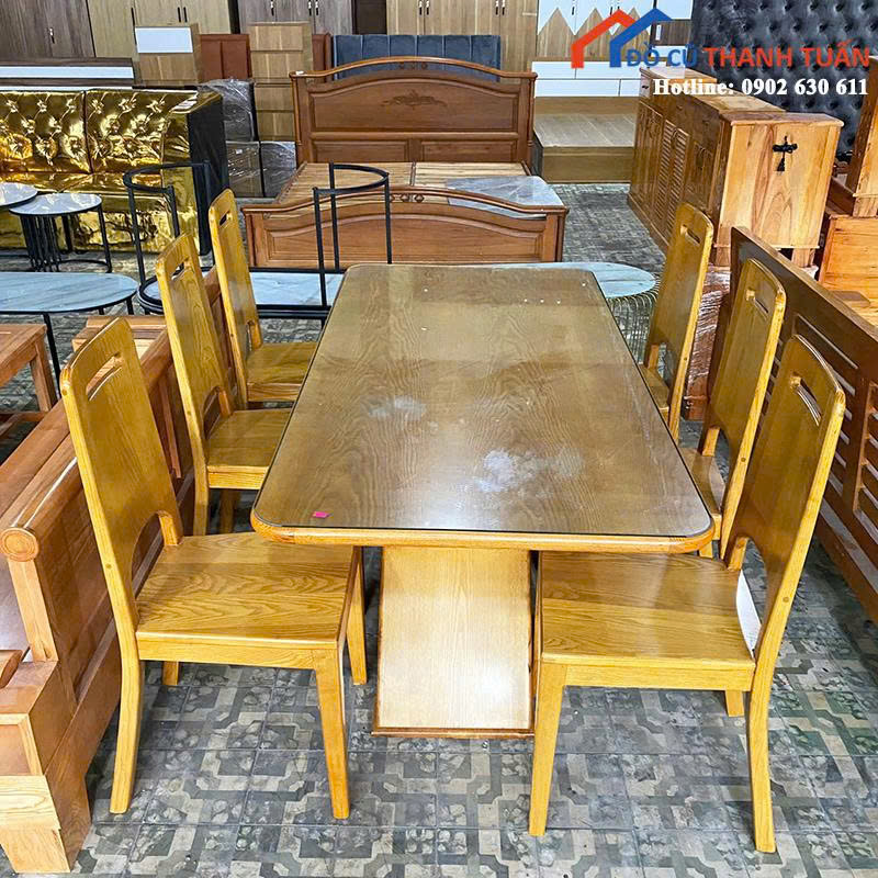 Thanh Lý Bộ Bàn Ăn Gỗ Sồi Mặt Kính Sang Trọng Mới 99%