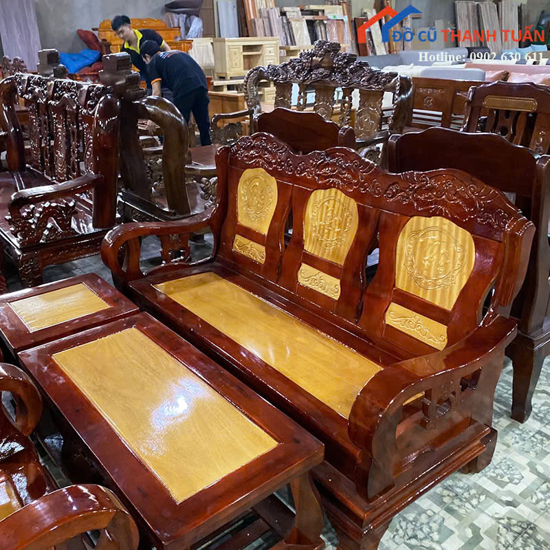 Ngoài salon gỗ thanh lý, Đồ Cũ Thanh Tuấn còn có nhiều mặt hàng nội thất khác như bàn ghế, tủ kệ, giường, quầy lễ tân, sofa giá tốt. Anh chị có thể đến kho xem hàng trực tiếp hoặc liên hệ gọi điện, nhắn Zalo để được tư vấn chi tiết