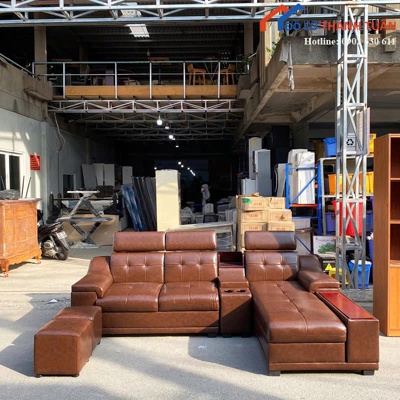 Thanh Lý Bộ Sofa Bọc Da Màu Nâu Góc L Mới 99%