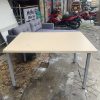 Chất liệu: Nệm bọc simili ngồi êm, mát, bàn inox mặt kính