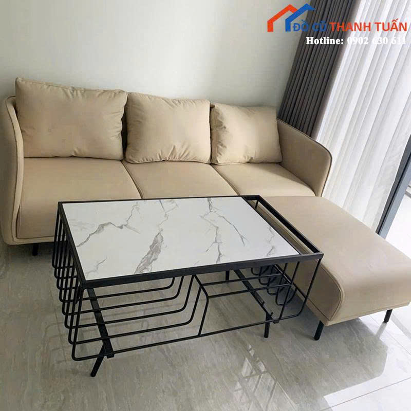Mô tả: Bộ sofa được thiết kế nhỏ gọn, phù hợp cho căn hộ mini, chung cư hoặc phòng khách diện tích vừa phải. Phần nệm tựa lưng và nệm ngồi đều tách rời, dễ tháo vệ sinh. Kiểu dáng hiện đại, chân ghế cao giúp việc lau dọn bên dưới trở nên tiện lợi hơn. Đi kèm là bàn lục giác mặt đá sang trọng, tạo điểm nhấn độc đáo cho không gian.