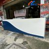 Quầy lớn được đóng bằng gỗ MDF cao cấp, có khả năng chống thấm nước, chống trầy, chịu lực cao, thiết kế màu xanh trắng hiện đại, mẫu mới 100% thanh lý giá: 4.800.000 vnđ.