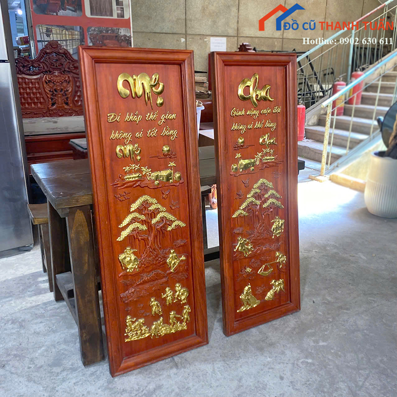 Thanh Lý Tranh Gỗ Chạm Khắc Cha Mẹ Mới 99%